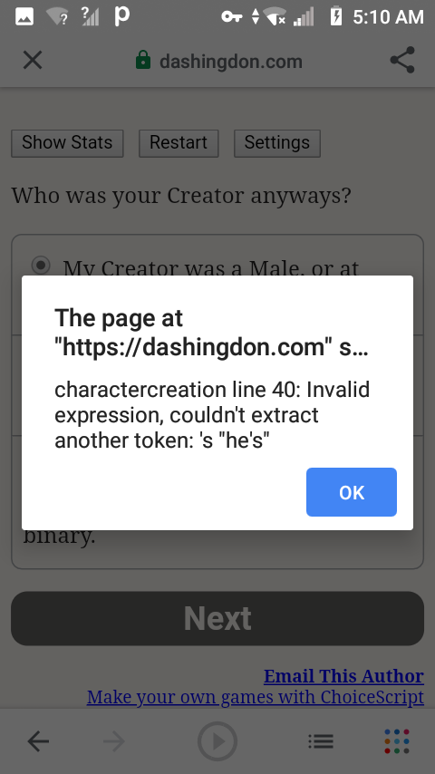Parental Figures now all have proper coding. Gender Choices have been fixed. Percents not changing has been fixed [In most places, not sure if I got all of them]. Fixed it flipping from second to first person, and vice versa, over and over again. Some other stuff I can’t mention without having a perfect memory, or writing it down.
