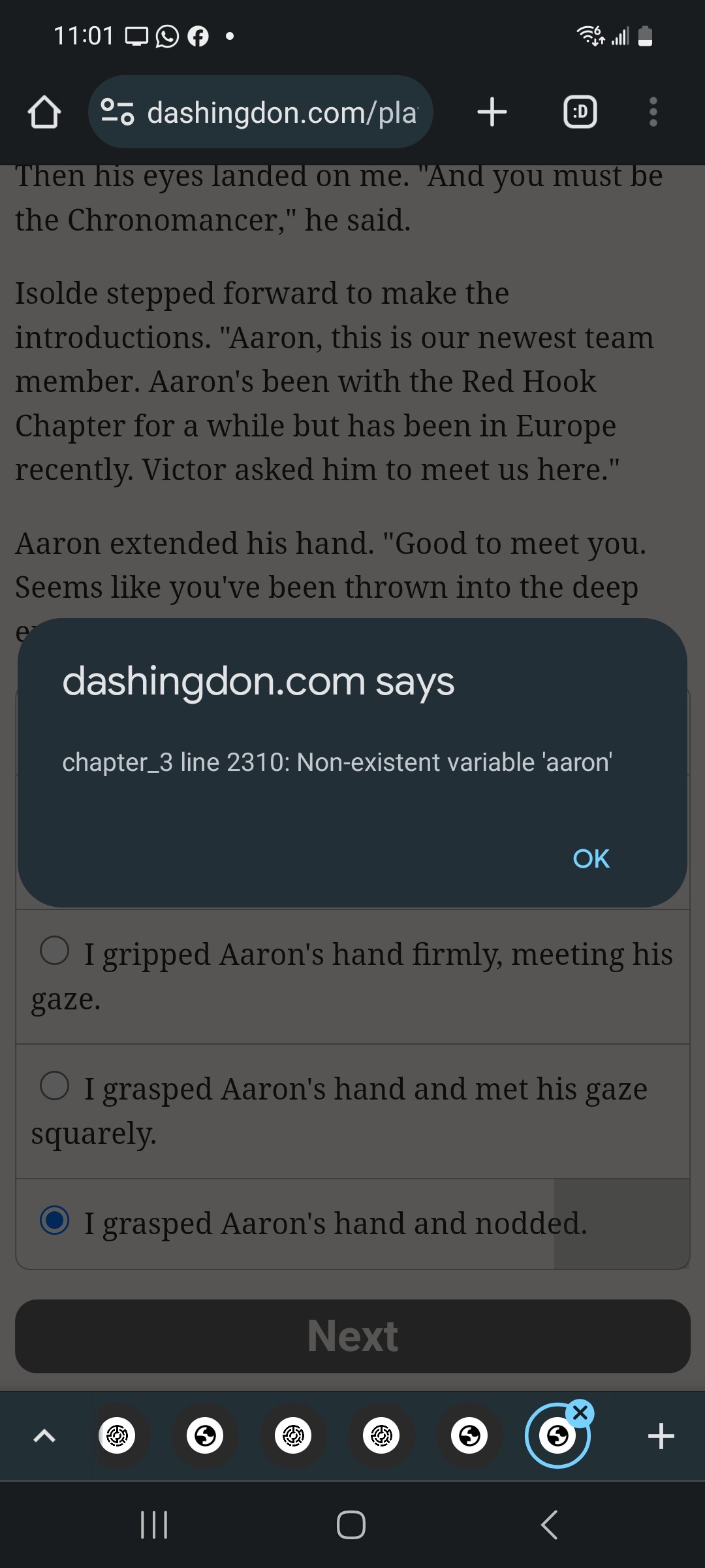 I found a bug incase it hasnāt been reported yet? A loop if u will? After encountering death and having my stats increase by 3 I then proceeded next and been brought back to town hawthorne where everything seems a miss convo repeats here, that been said its good premise but I canāt seem to form a bond with the characters due to the dialogues seemed one sided ⦠its like im reading a book and the choices doesnāt really affect much but donāt worry I think your learning quite fast