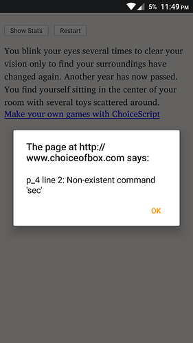 Got this error when I played your main project (first link) its after I choose to laugh at the party
