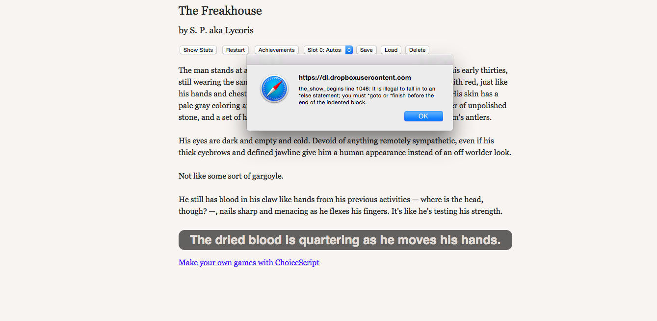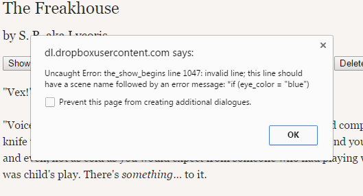 So… I’m very busy this week (and it’s Monday on top of that! ), but I was feeling… kind of happy, and left a demo Though it’s spoiler proof! I erased a ton of variables, so feel free to play.