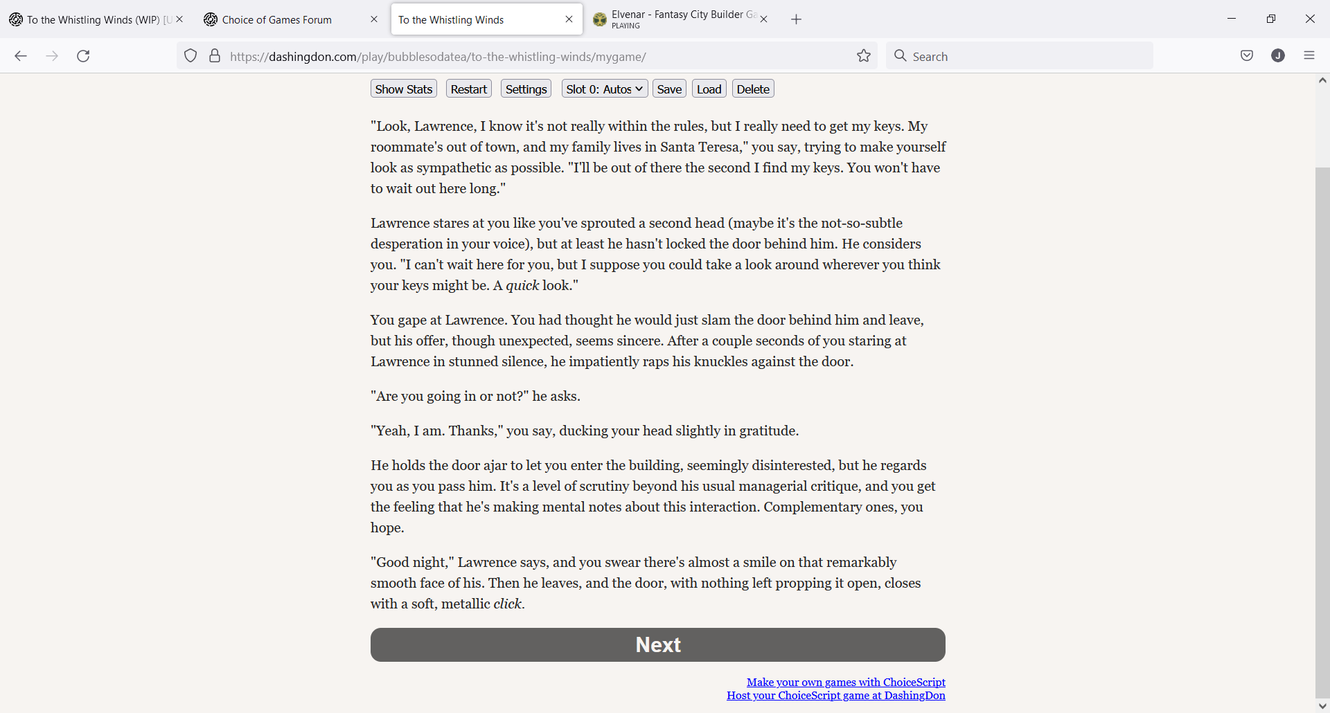 Even the descriptions of the park are so realistic I could visualize every detail perfectly and felt like it was a real place. I mean, overall I’d say I’m a fan of how you describe every detail in the game.